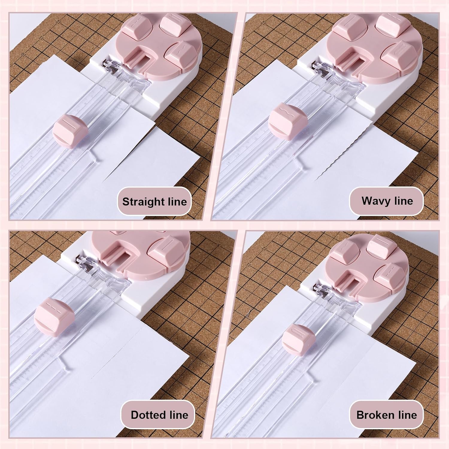 This 4-in-1 paper cutter is a versatile cutting tool designed for straight, wavy, perforated, and folded paper. It is ideal for cutting various paper products, including paper labels, postcards, scrapbooking, and more. Perfect for craft enthusiasts, this tool is great for home, office, and school use.