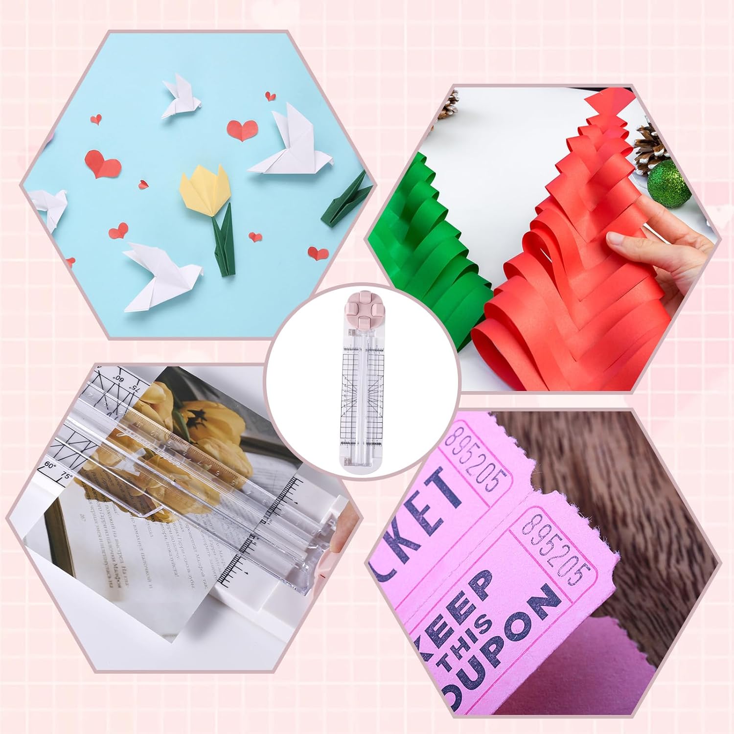 This paper cutter is not only great for cutting paper but also suitable for various crafting materials. Whether it’s for cutting origami, greeting cards, photos, scrapbooks, labels, coupons, or other paper products, you’ll find it easy to use.