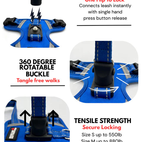 The magnetic dog harness and leash allows quick, secure one-handed locking for safer dog walks.