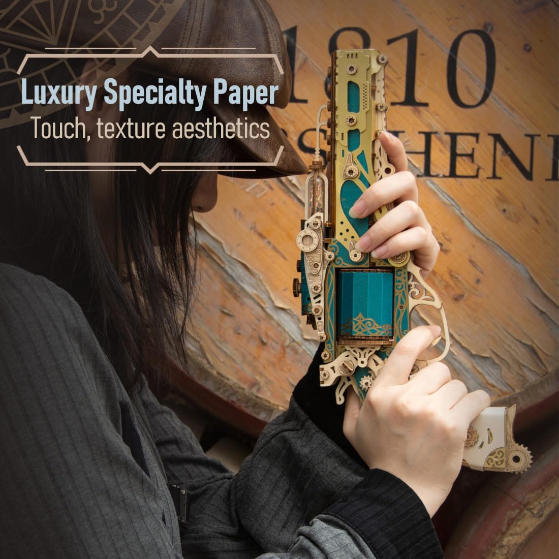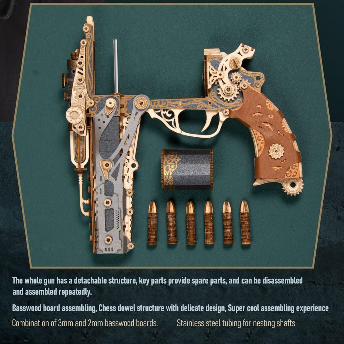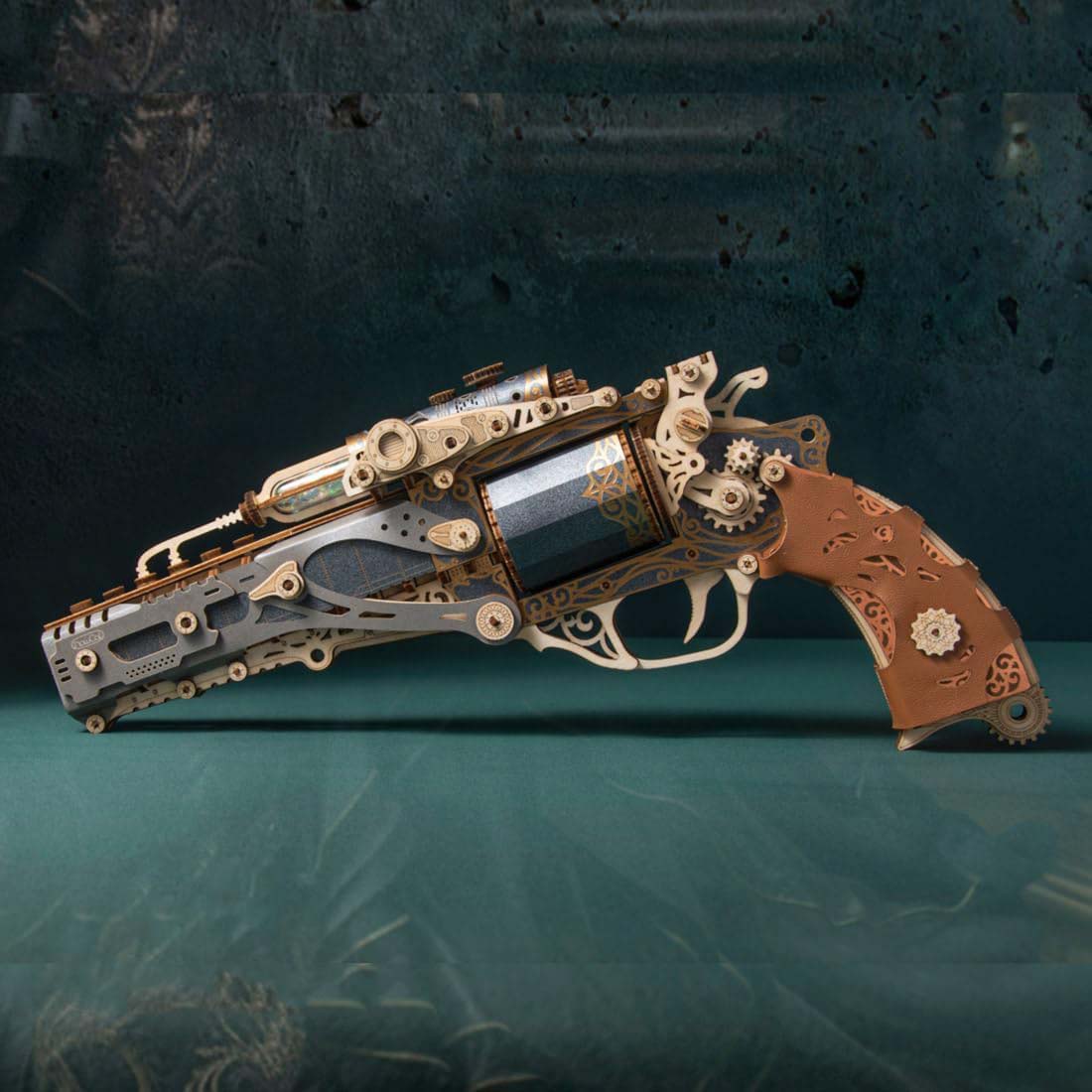 This DIY revolver kit requires hands-on assembly to complete a highly detailed 1:1 scale wooden model.
