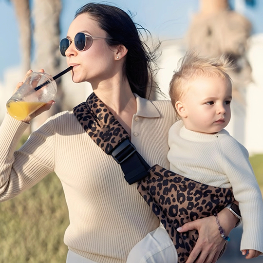 Crossbody baby carriers with stylish patterns designed to provide comfortable and secure carrying for babies during daily outings.