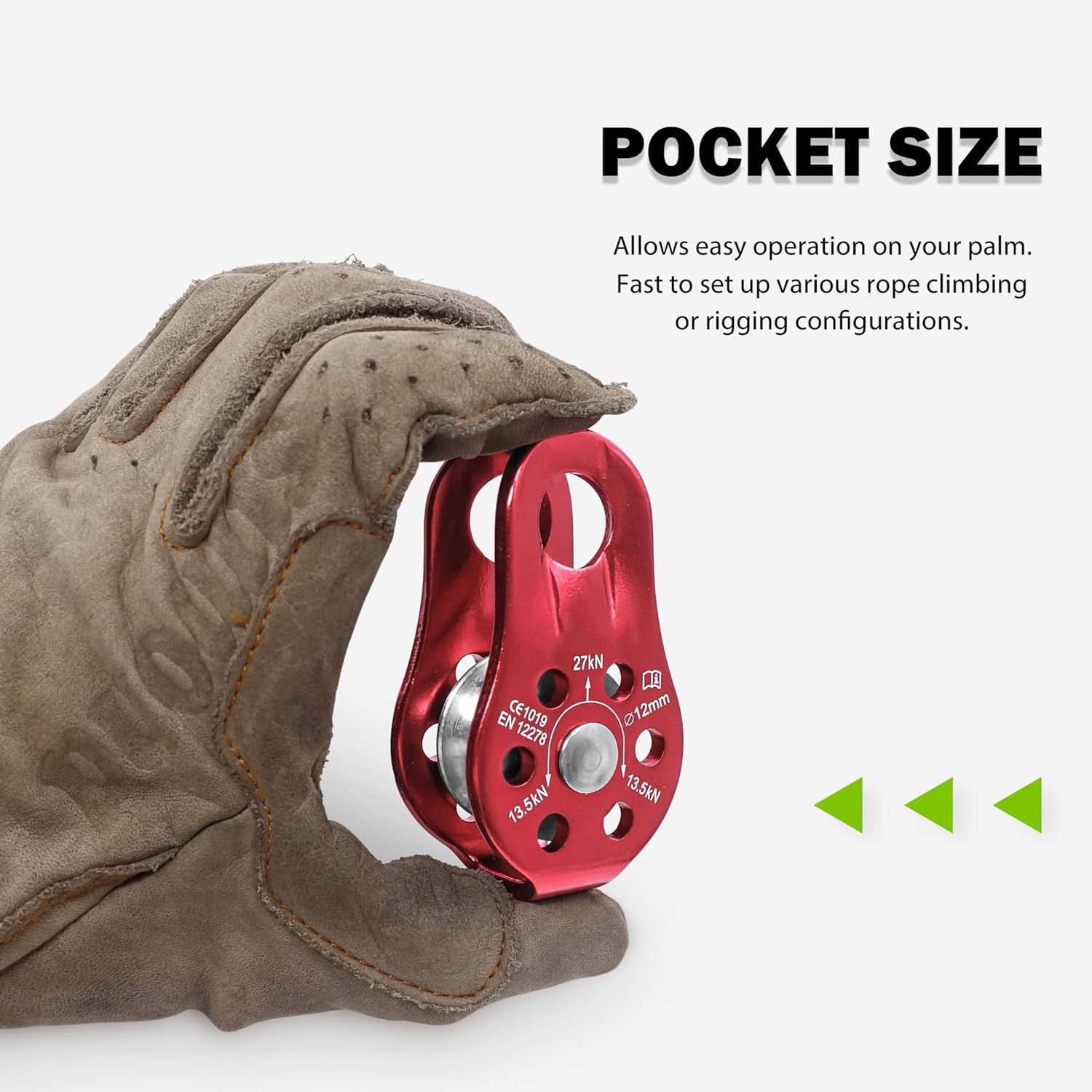 This high-quality mini pulley is commonly used in rope connections for climbing techniques and can be installed on climbing harness rope bridges to reduce wear. Additionally, it serves as an efficient, universal pulley for redirecting in rigging configurations, DIY pulley rope fitness setups, and in mechanical advantage systems for traction and hauling.
