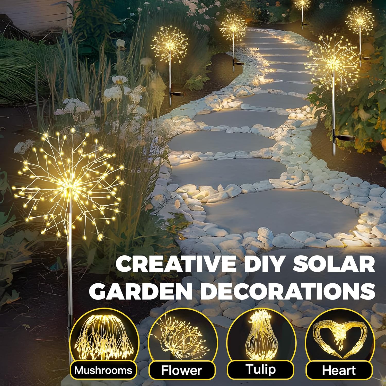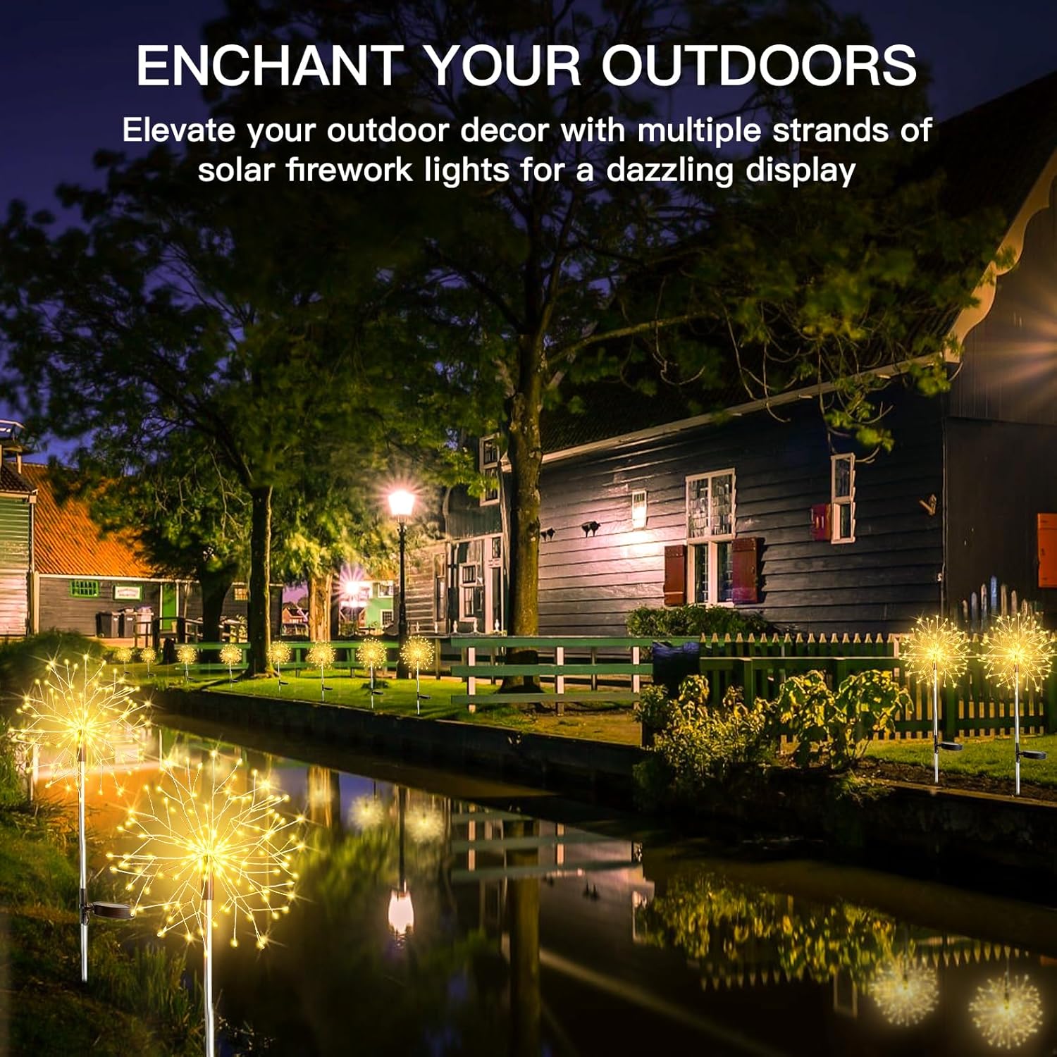 Transform your outdoor space with these 150 LED solar firework lights, designed to create a dazzling starburst display in gardens, patios, pathways, and flowerbeds. Featuring upgraded thicker copper wires and ultra-bright LEDs, these decorative solar lights bring charm, warmth, and vibrant illumination to every evening gathering or quiet night outdoors.
